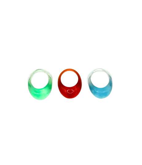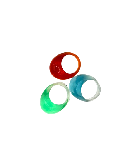 Anillo resina multicolor transparente.