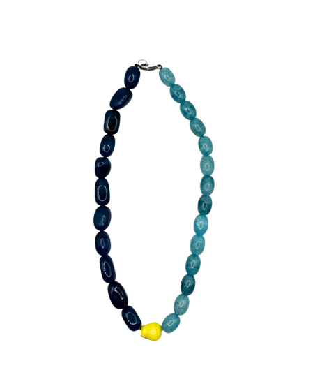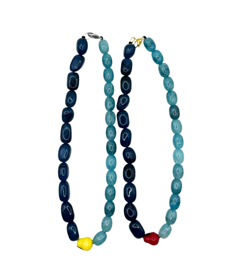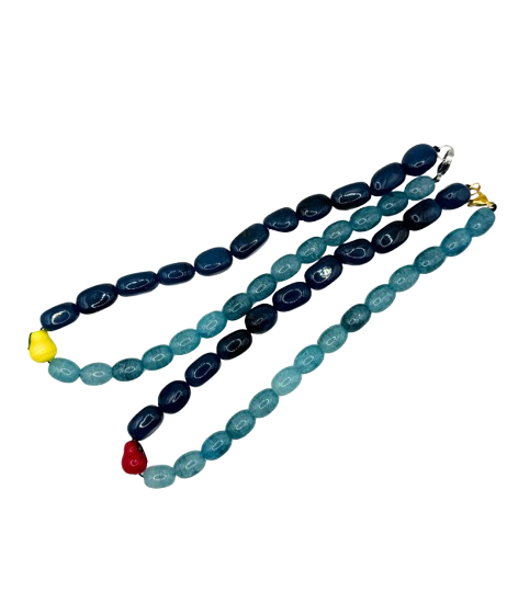 Collar de piedras naturales y minerales de calcedonia irregulares de 18x12mm. Combinado con cuentas decorativas de cristal en forma de pera.