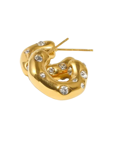 Pendientes de aro gruesos de acero inoxidable con circonita cúbica transparente, irregular, chapado en oro y pulido fino.